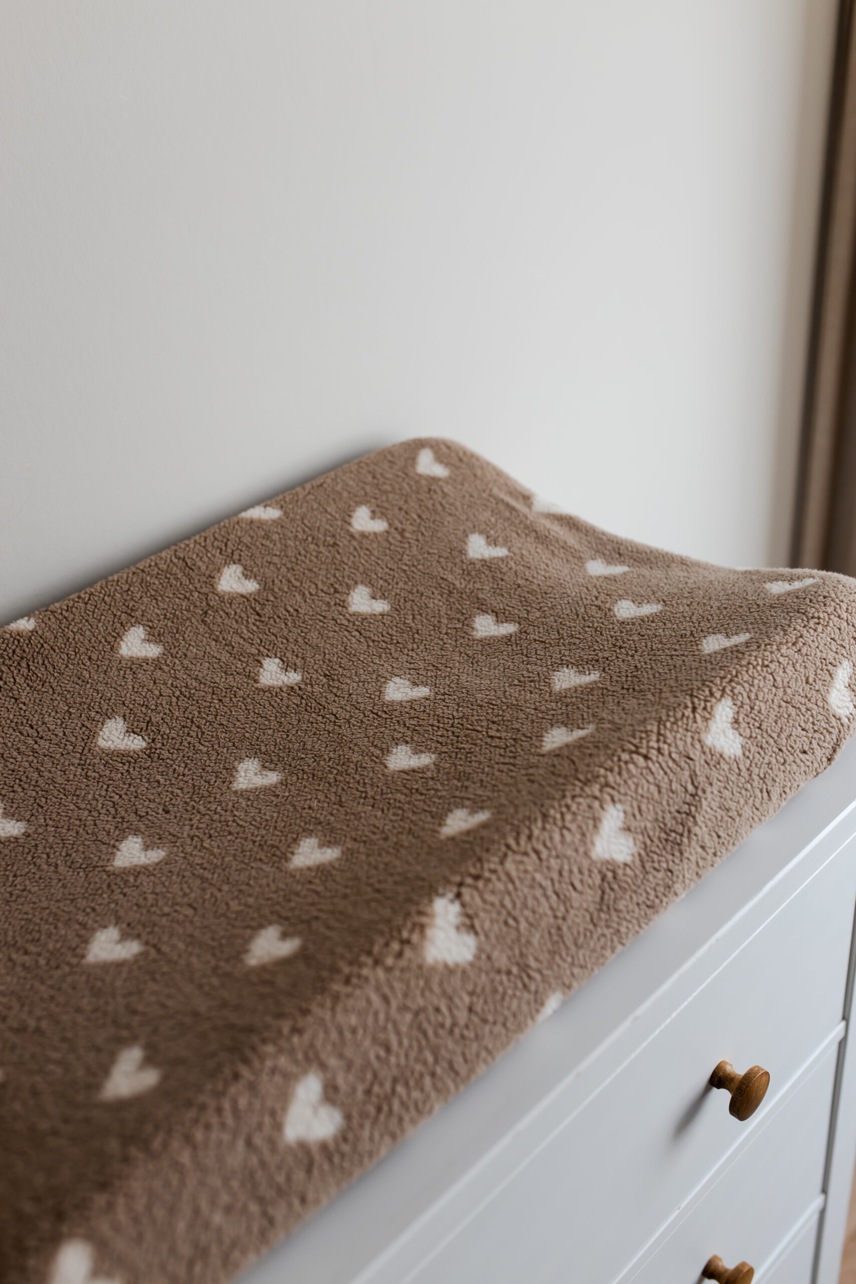 Home » Verzorging » Aankleedkussenhoezen » Aankleedkussenhoes -hartjes taupe teddy