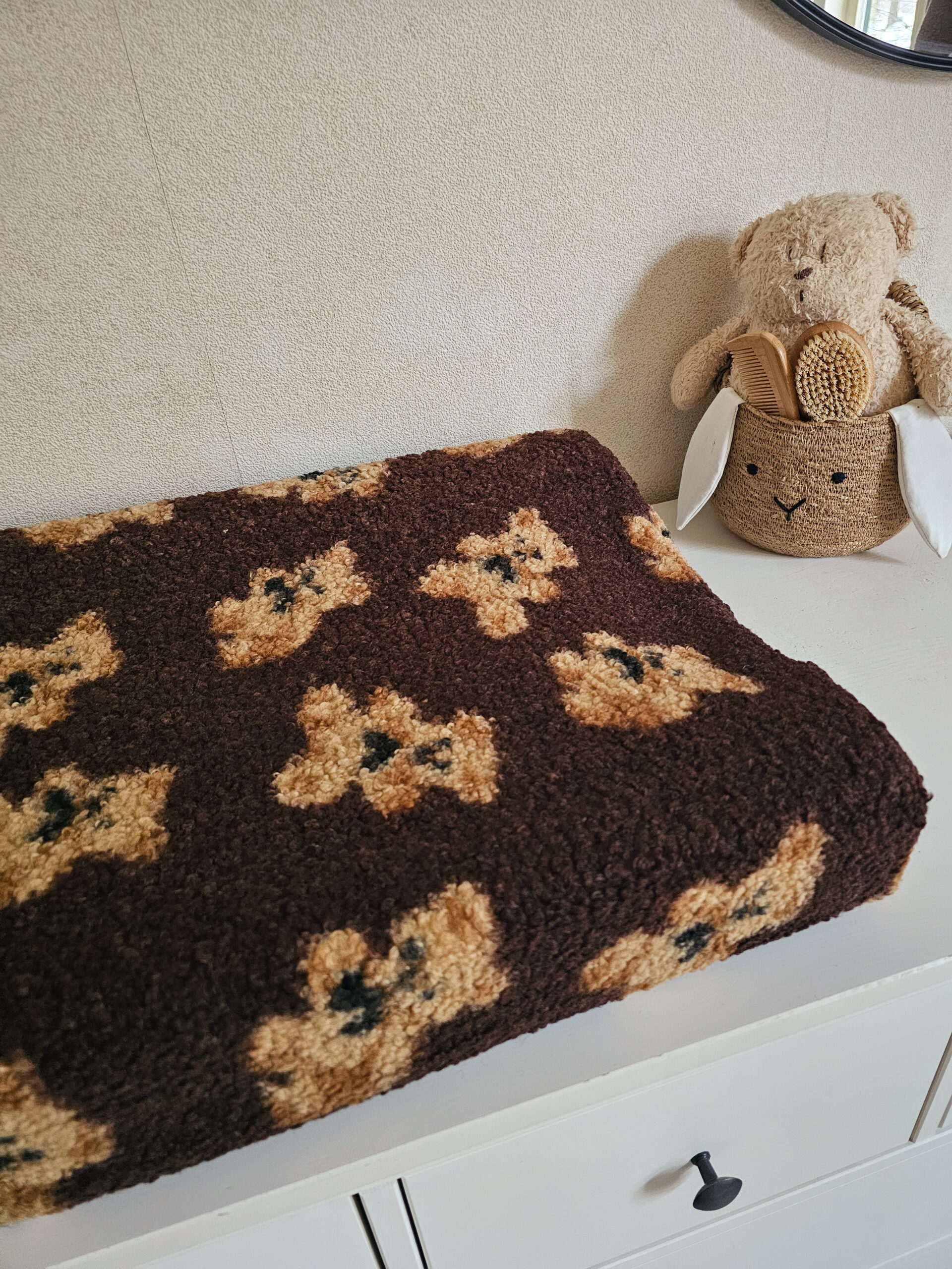 Home » Verzorging » Aankleedkussenhoezen » Aankleedkussenhoes -Teddy beertjes bruin