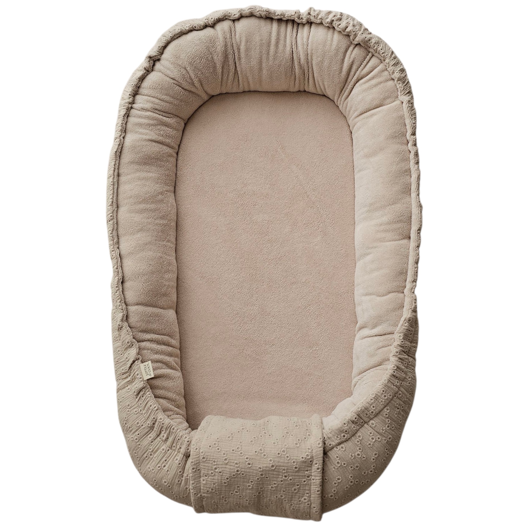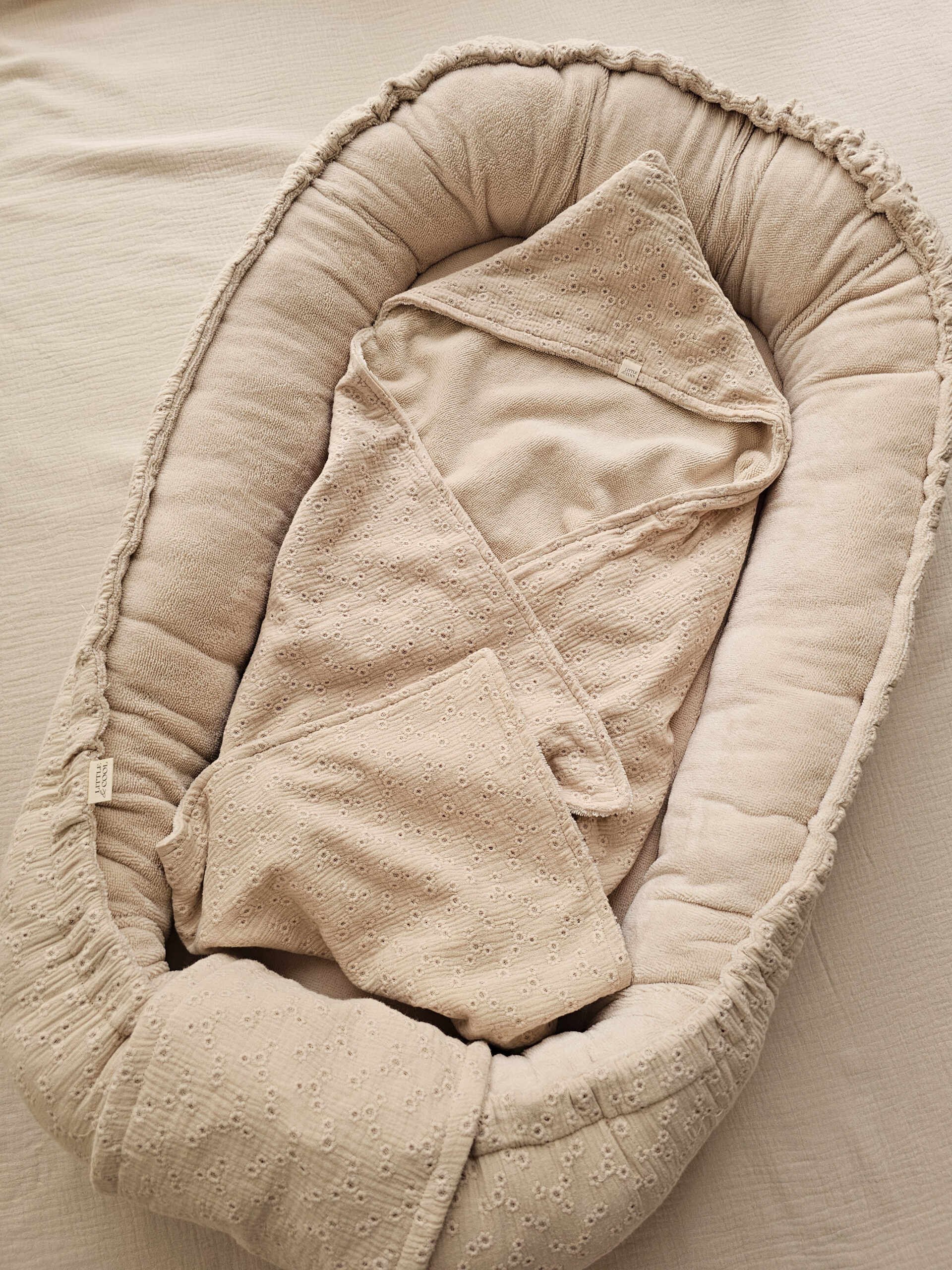 Babynestje - Bamboe Broderie bruin+Badcape/Wikkeldoek broderie bruin