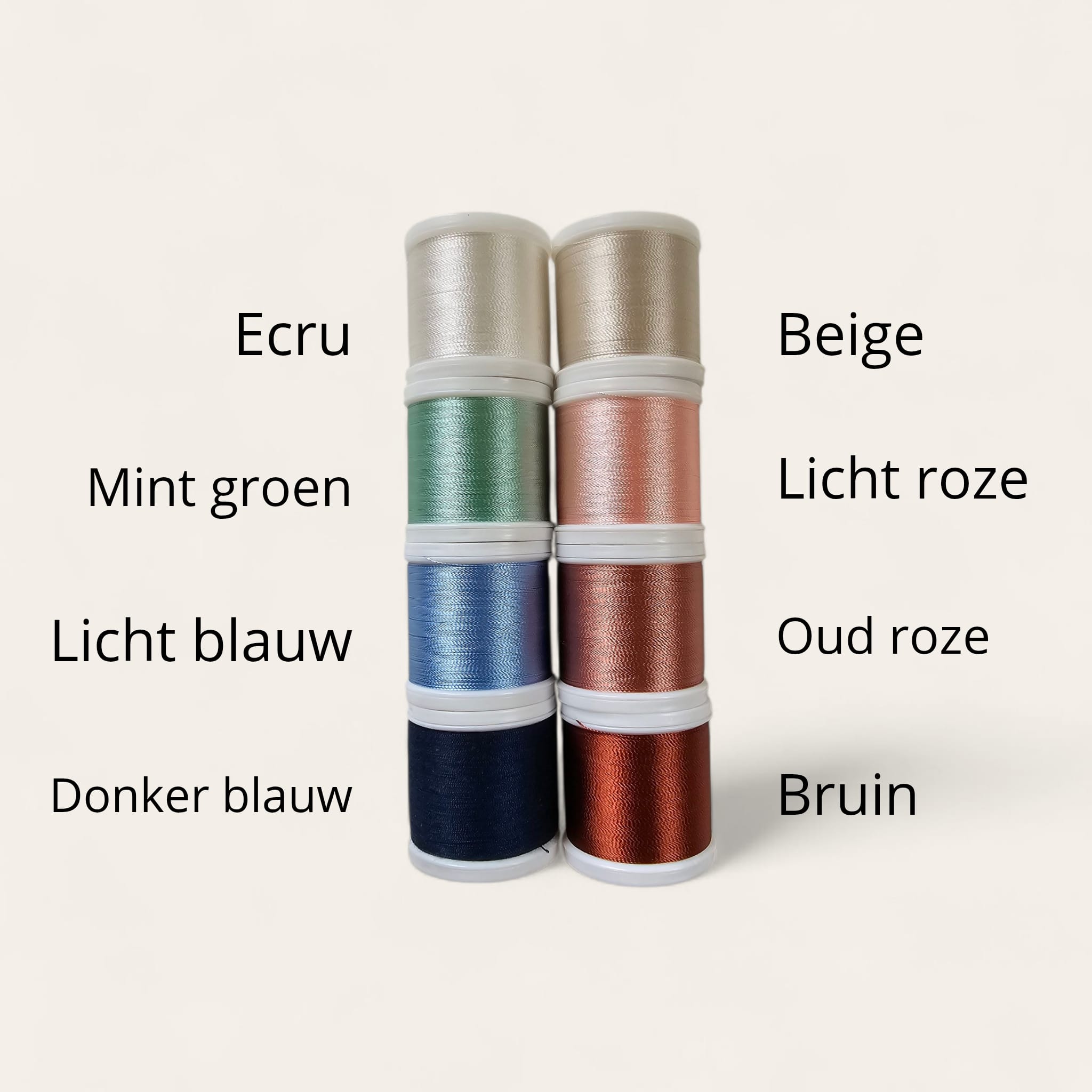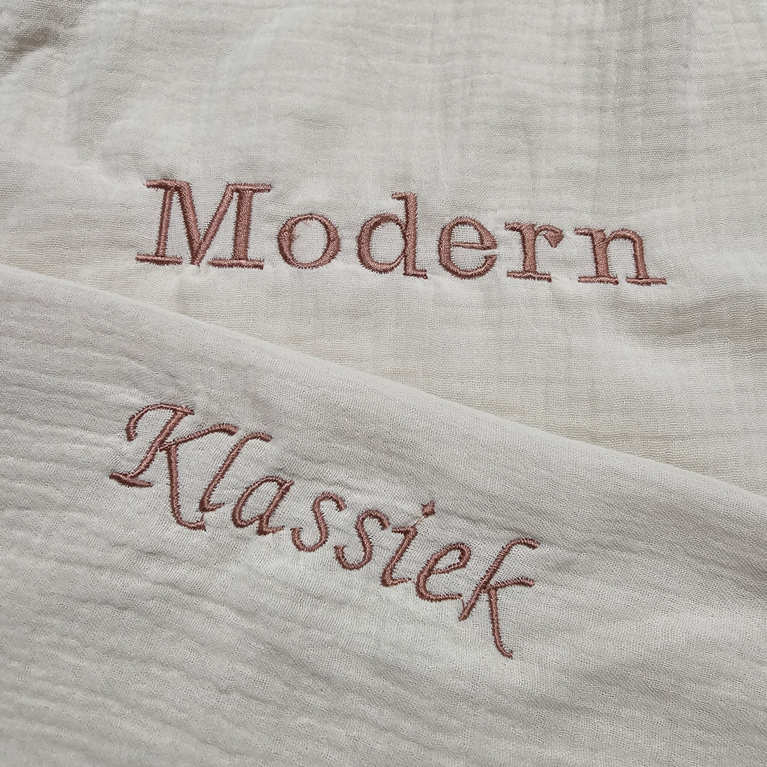 Laat je een product borduren? Houd dan rekening met een iets langere levertijd. Het artikel wordt speciaal voor jou, met liefde, in ons eigen atelier gemaakt. Toch snel nodig? Stuur ons dan even een mailtje, dan kijken we graag met je mee wat er mogelijk is.