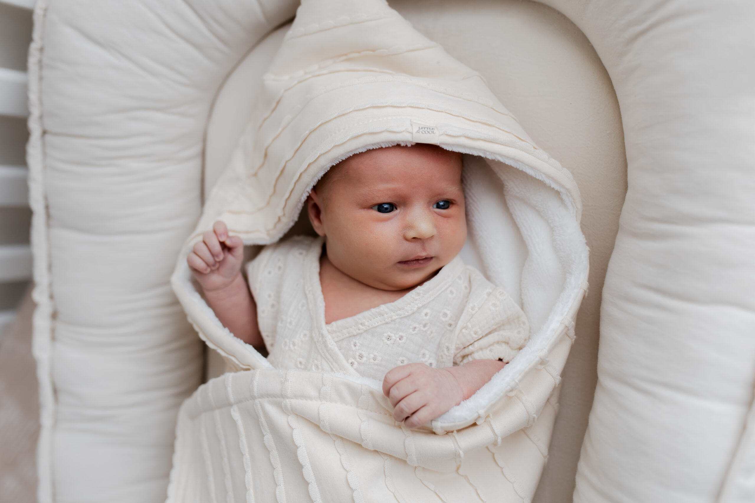 Een echte musthave voor jouw newborn, die je dagelijks zal gebruiken! De Little&Cool luxe omslagdoek met capuchon is met zachte velours gevoerd en gebruik je om je baby in te wikkelen. Zo blijft je kleintje lekker comfortabel warm, in je armen, in de box, als je naar het consultatie bureau gaat etc. Deze musthave gaat uiteraard ook mee in de beval tas, want juist voor een Newborn baby is dit echt een hele fijne baby blanket. En het staat ook nog eens super schattig…