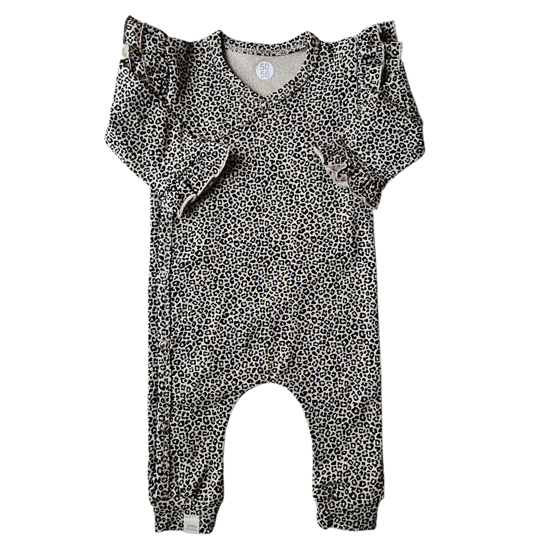 Boxpakje Nikki - Ruffel  leopard sand - 62/68+Litte and cool Merino wol Babysokjes Sand