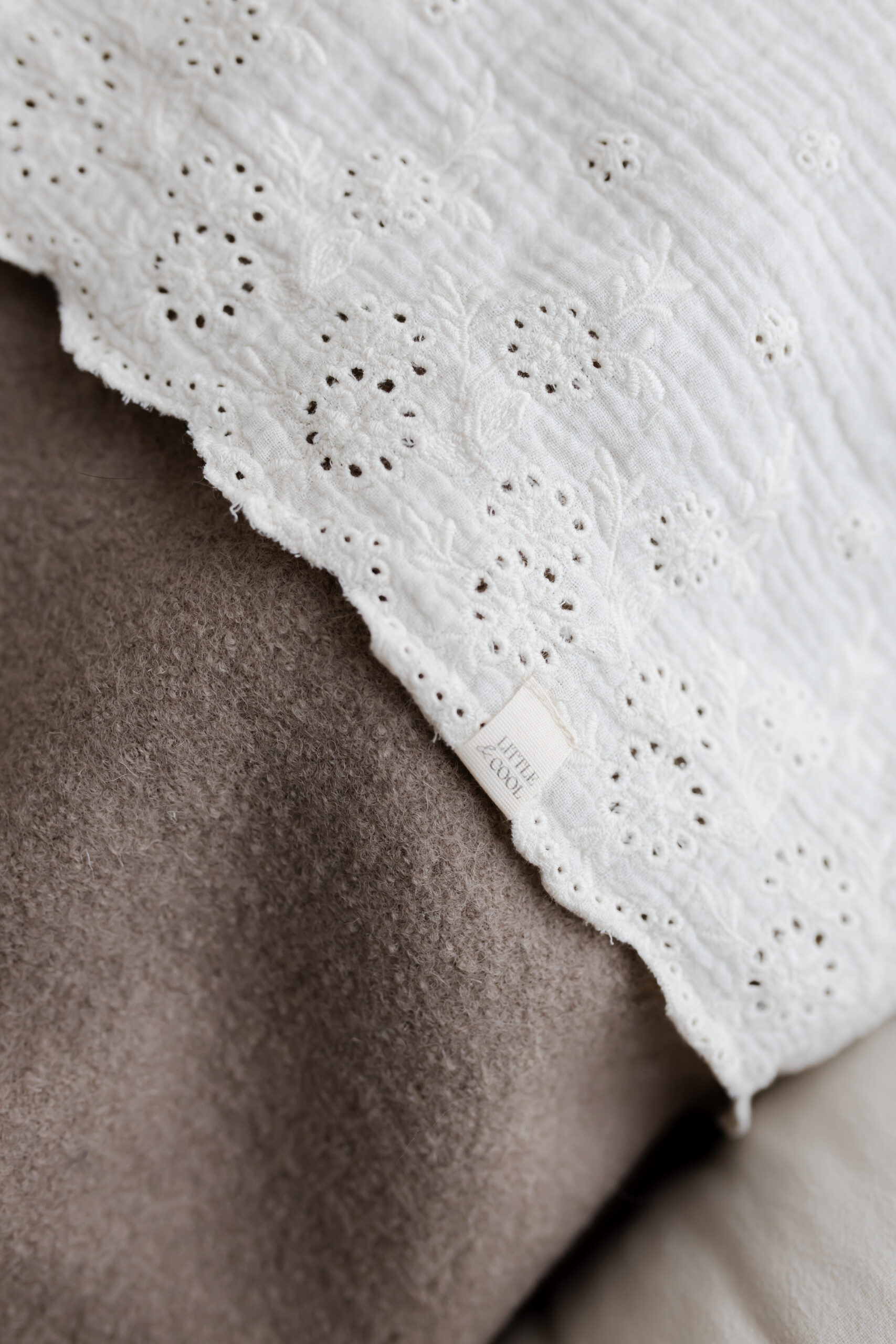 Laken gewassen katoen Wieg- / ledikant -Embroidery Naturel schulrand