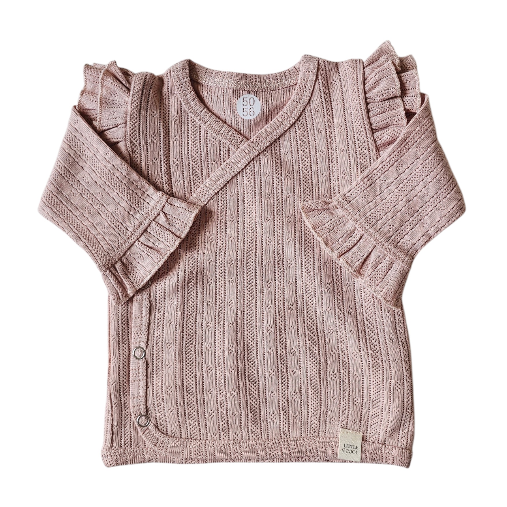 Home » Babykleding » Baby girl 0-1 jaar » kleding » shirts lange mouw girls » Longsleeve – overslag ruffle nude roze pointelle