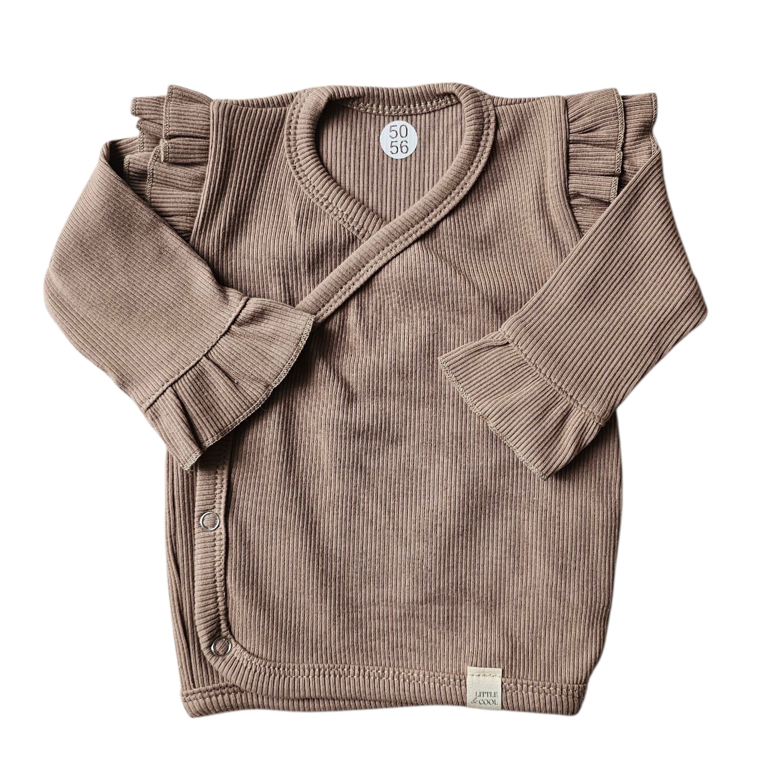 Home » Babykleding » Baby girl 0-1 jaar » kleding » shirts lange mouw girls » Longsleeve – overslag ruffle taupe rib