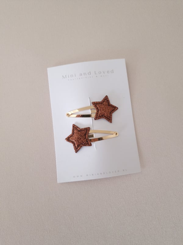 Home » Babykleding » Baby girl 0-1 jaar » Accessoires » Haarspeldjes » Mini&loved – Glitter Christmas star brown middel (2 stuks)