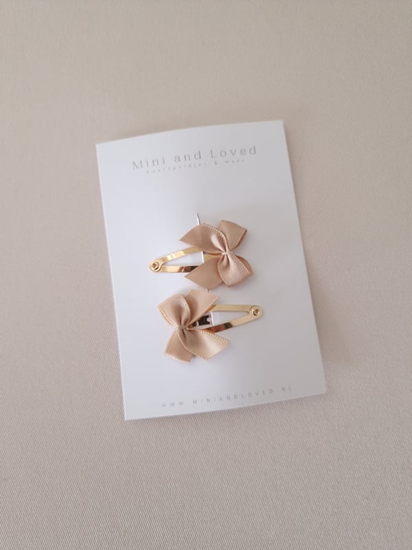 Home » Babykleding » Baby girl 0-1 jaar » Accessoires » Haarspeldjes » Mini&loved – Little Bow nude klein (2 stuks)