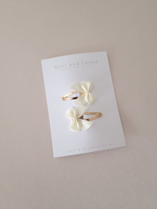 Home » Babykleding » Baby girl 0-1 jaar » Accessoires » Haarspeldjes » Mini&loved – Little Bow white klein (2 stuks)