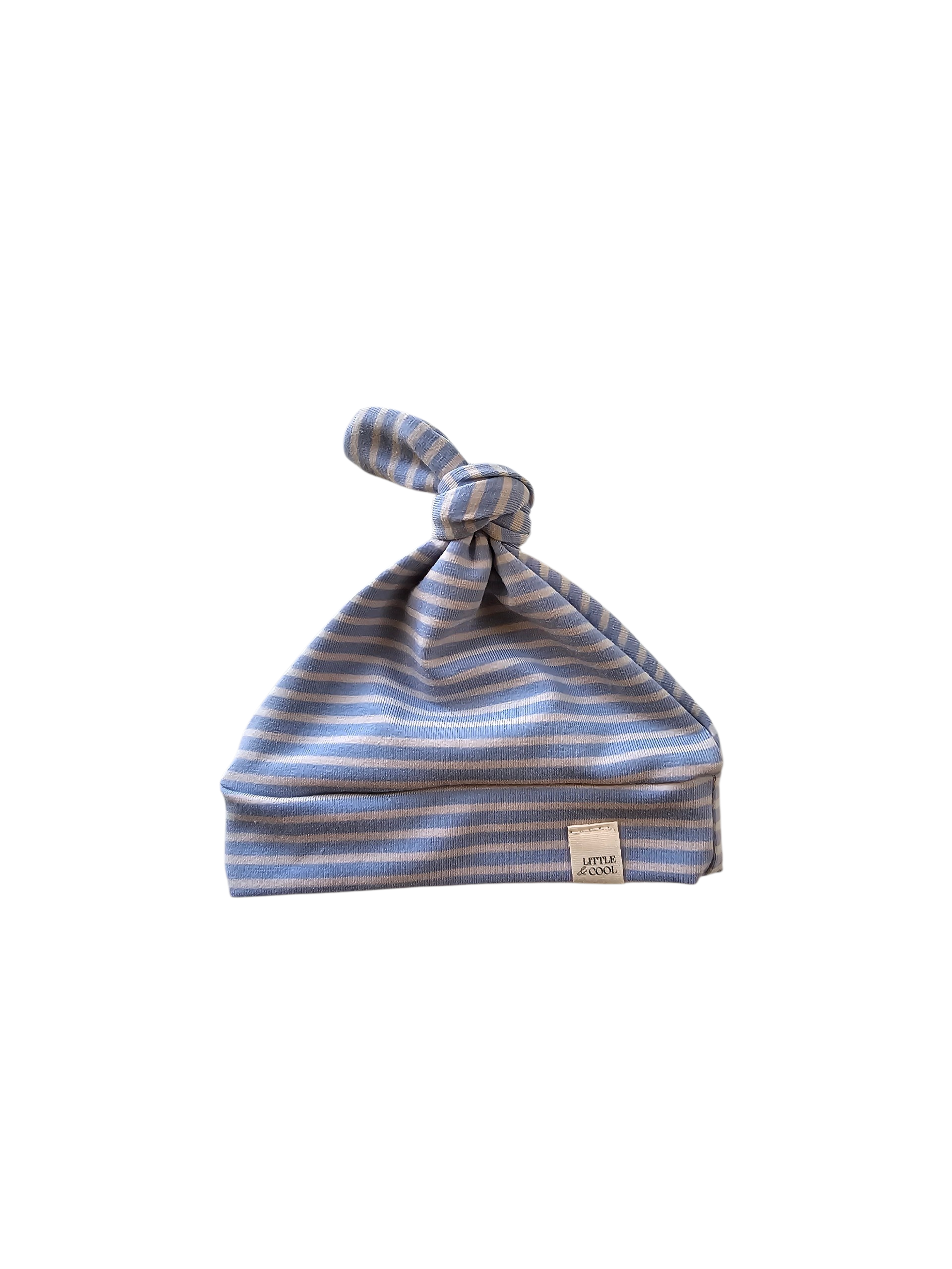 Home » Accessoires » Newborn knoopmutsjes » Newborn Mutsje los – streepjes staalblauw beige
