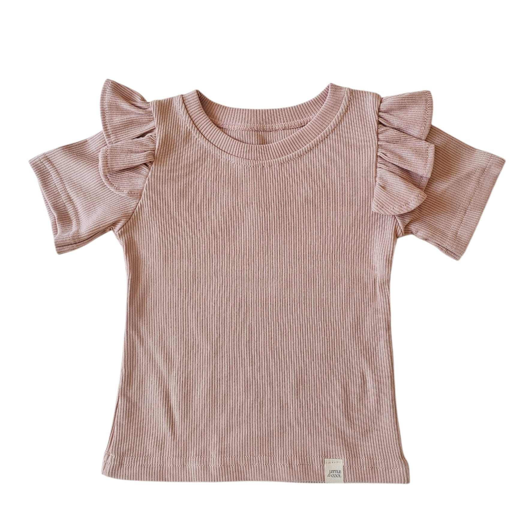 Home » Babykleding » Baby girl 0-1 jaar » kleding » shirts korte mouw girls » Shirt – Ruffel Rib nude roze