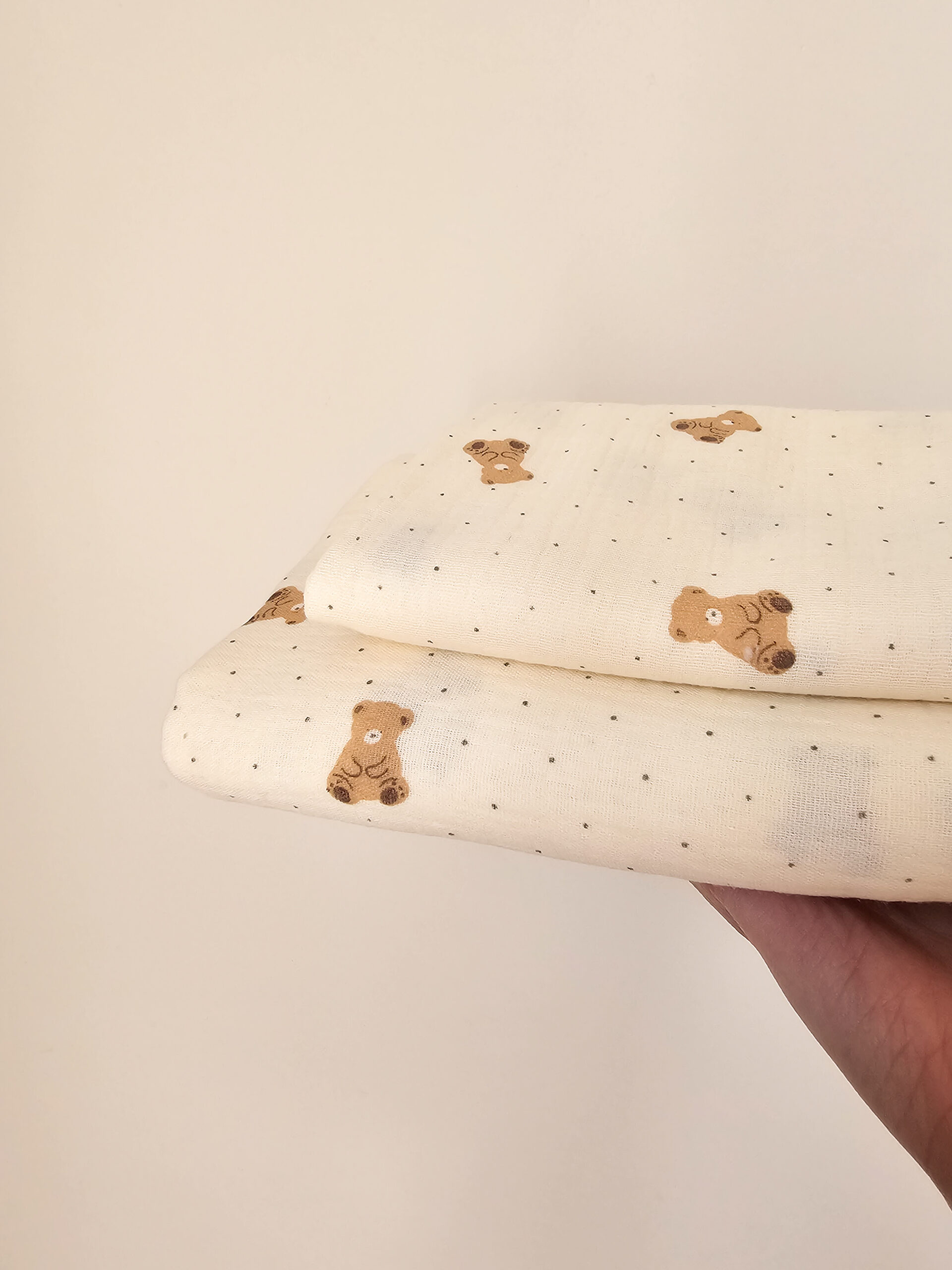Home » Mousselines » Swaddles » Swaddle – beertjes met stipjes