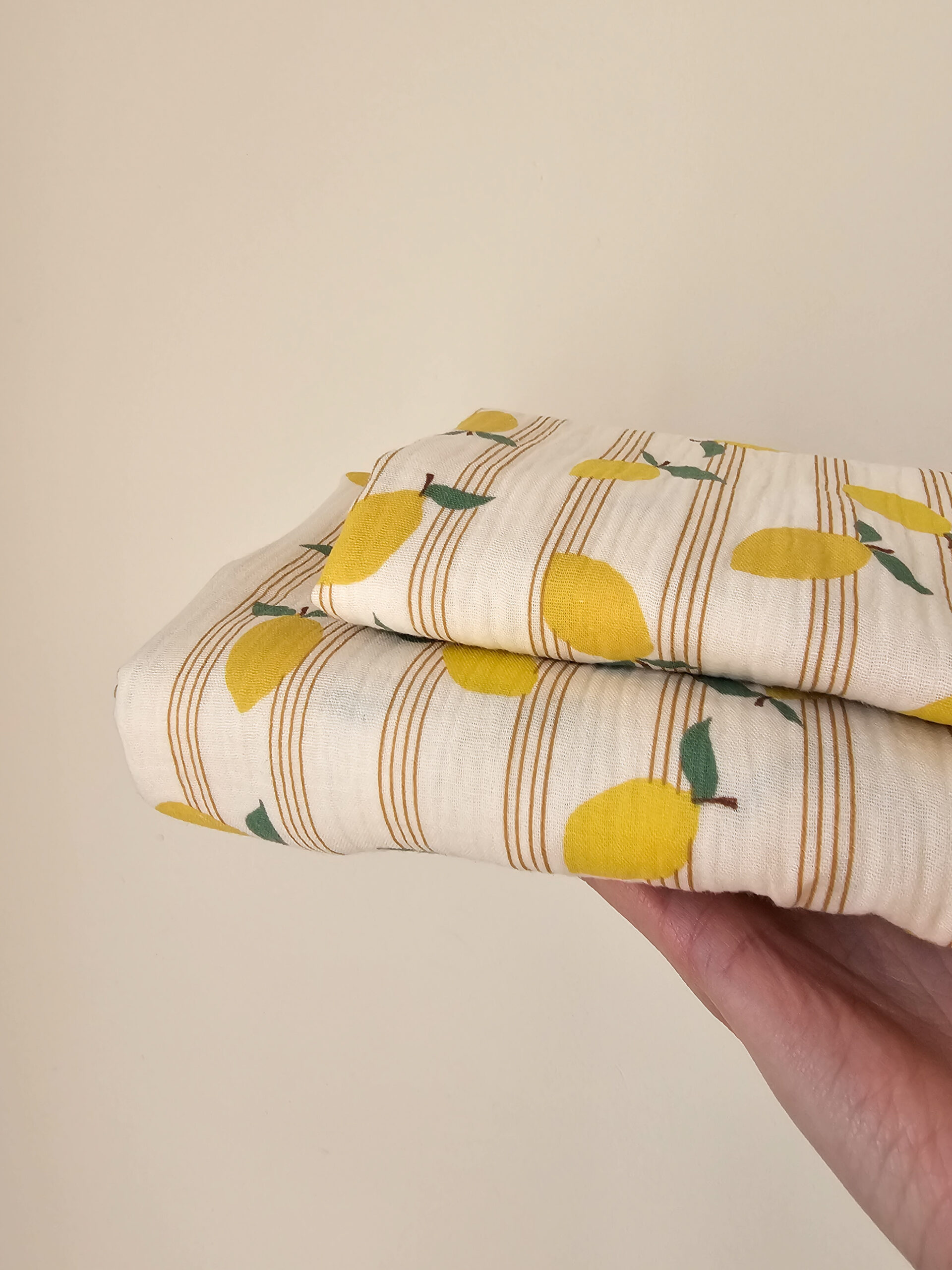 Swaddle - citroenen met streepjes - M 65x65 cm+XL Beach Swaddle - Embroidery Naturel